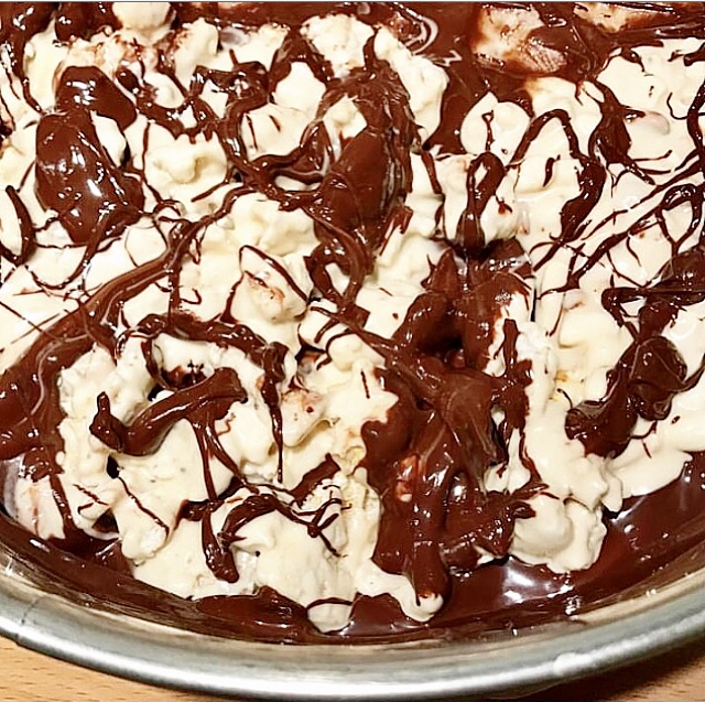 - riempire la tortiera con il composto di cioccolato bianco e gallette tostate