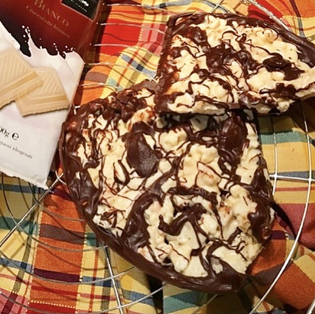 Una fantastica cake di cioccolato fondente e bianco! Da stuzzicare in qualsiasi ora del giorno, per far gioire grandi e piccini! Semplice e veloce nella realizzazione, questo dolce è ottimo da sgranocchiare, se preparato in piccole dimensioni diventa uno snack!
