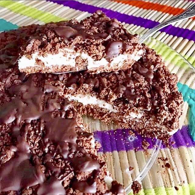 - chiudere la torta, sbriciolando il rimanente impasto al cacao
