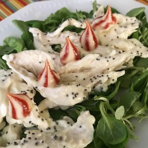 un’altra versione è condire prima la valeriana con limone – olio – sale e lasciare sgocciolare . Poi mischiarla a gli straccetti con maionese! Buon appetito!