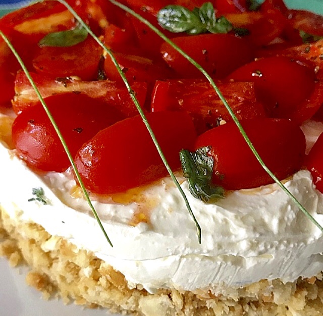 Questa è una delle tante versioni salate della cheesecake! Da l’idea di un dolce, ma in realtà è una torta salata al formaggio spalmabile. Per decorare ed insaporire ho usato i pomodori, ma voi potete sbizzarrirvi mettendo altro, come ad esempio: giardiniera – salumi – verdure di stagione! Intanto vi lascio la mia semplice ricetta da preparare in soli 15 minuti, forse anche meno se siete abili in cucina!