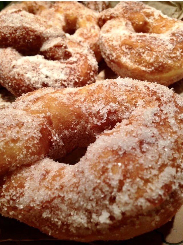 - adagiare la frittura su carta assorbente e passare i pezzi con zucchero semolato