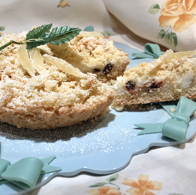 - coprire la torta sbriciolando l’impasto con la granella di mandorle