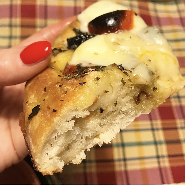 - appena pronta, coprite la pizza focaccia con un foglio di carta alluminio per 5 min e poi servite!!! Buon appetito!!!!!