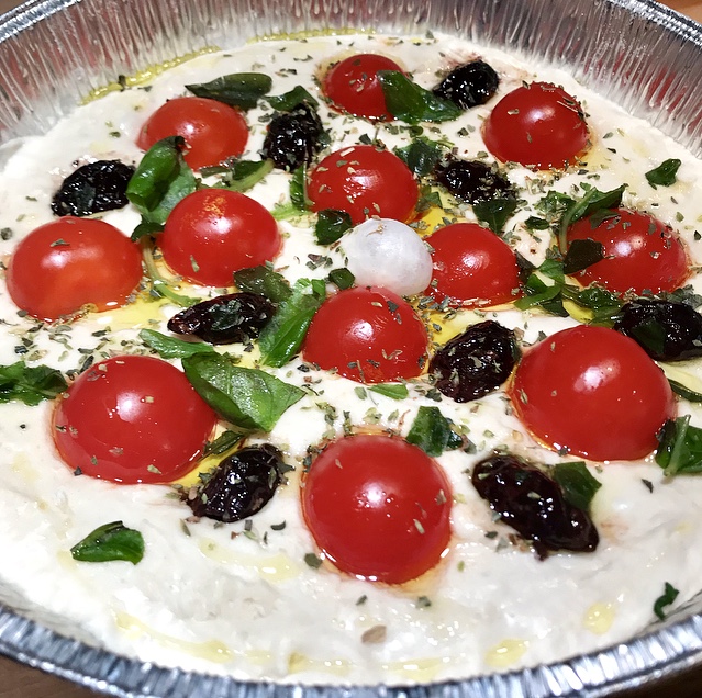 - farcire con i pomodorini tagliati a metà, le olive snocciolate, l’origano, il basilico, olio. Aggiustare di sale