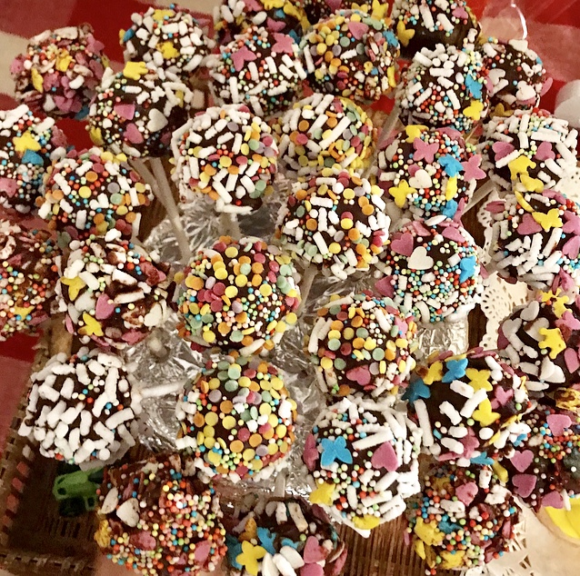 - passare i pops nel cioccolato fuso e poi ricoprire con gli zuccherini