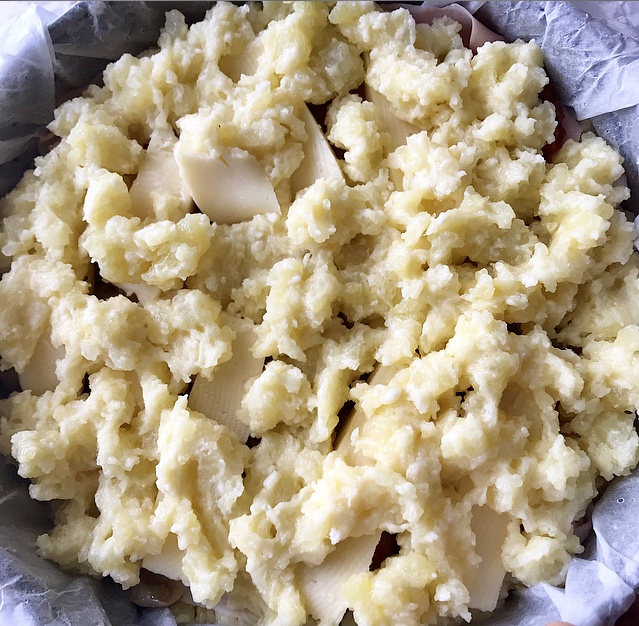 - coprire con il restante impasto di patate sbriciolandolo