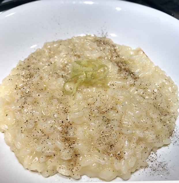 - servire il riso ( all’onda ) con il pepe nero grattugiato e qualche lamella di limone