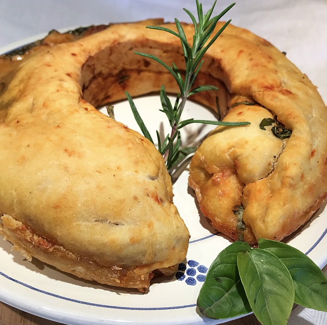 - arrotolare l’impasto ottenuto su se stesso formando il rotolone