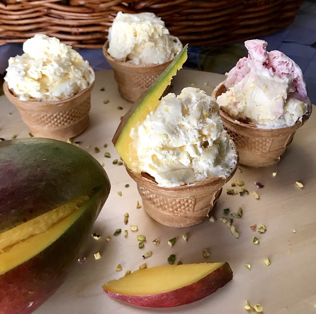 - Il mango è un frutto esotico che troviamo facilmente al supermercato. Con le sue proprietà nutritive e benefiche, è un ottimo alleato anti invecchiamento. Contiene potassio, il magnesio, il calcio e le fibre. In cucina si presta per le preparazioni dolci e salate. In questa ricetta vi propongo il gelato preparato senza l’uso della gelatiera, ma se preferite quello tradizionale basta eliminare il latte condensato e sostituirlo con il latte intero e i tuorli d’uovo montati con lo zucchero. Questo procedimento classico lo trovate in questo blog ma con altri frutti: gelato al melone Cantalupo o il classico alla fragola!