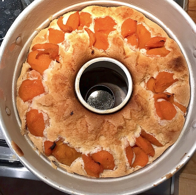 - riempire lo stampo con il composto ottenuto e aggiungere sopra le albicocche