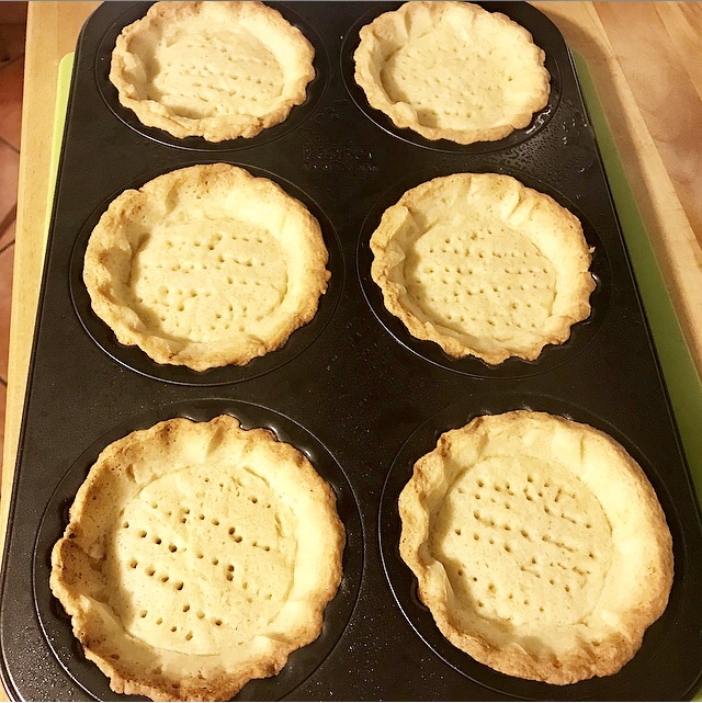 - sistemare ogni singola crostatina bucherellando il fondo con i lembi di una forchetta