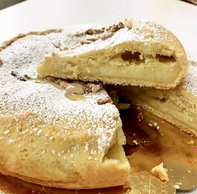 - Non so il perché chiamasi torta della nonna, forse per il suo cuore morbido stracolmo di dolcezza e un guscio fragrande e zuccheroso proprio come solo le nostre nonne sapevano dare. Il suo segreto è una friabile frolla all’olio che racchiude una gustosa crema pasticcera! E poi…..che dire di una cascata di zucchero a velo e tanti pinoli croccanti? Provare per credere!!!!!!