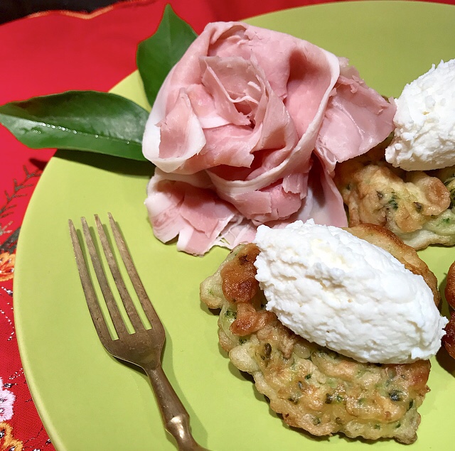 - Servire con chenelle di ricotta rigorosamente di pecora e una fetta di prosciutto di Praga dando la forma di una rosa