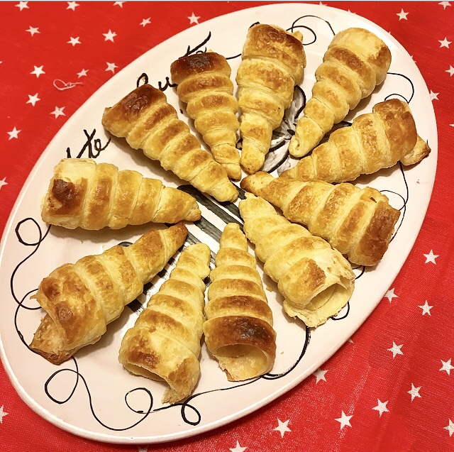- avvolgere ogni singola striscia sul cornetto e poi spennellare con la panna da cucina