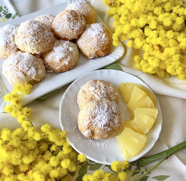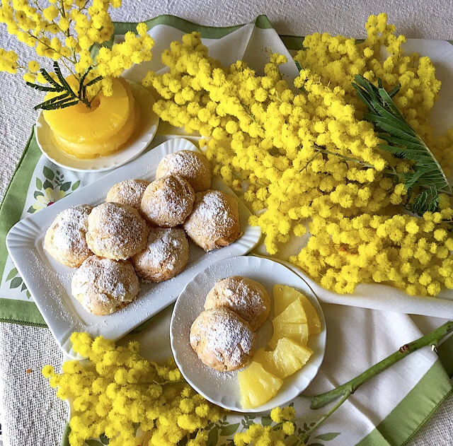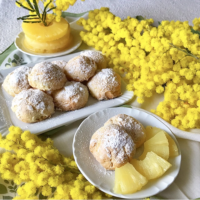 - Dedicati alla festa della donna, questi croccanti biscotti hanno un lieve gusto all’ananas con un cuore morbidoso……uno tira l’altro!!!! Serviteli con ananas sciroppato, (come in foto) per un pomeriggio dedicato alle nostre amiche, mamme, sorelle ……..Insomma vedi tu con chi preferisci condividere questo semplice breackfast!!!!! Biscotti realizzati senza aggiunta di burro…..vedi come ho fatto!!!