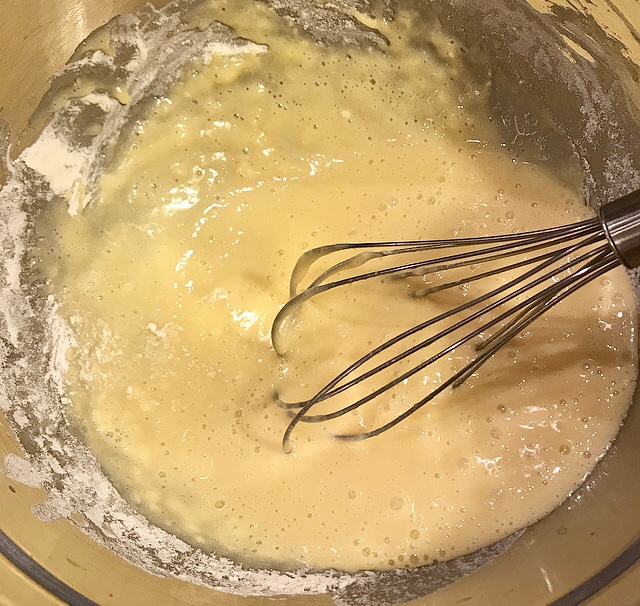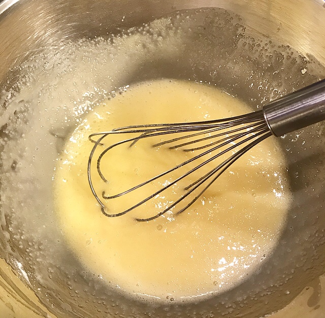 - aiutandosi con una frusta a mano iniziare a sbattere le uova con un pizzico di sale, poi aggiungere lo zucchero a velo e lo zucchero semolato