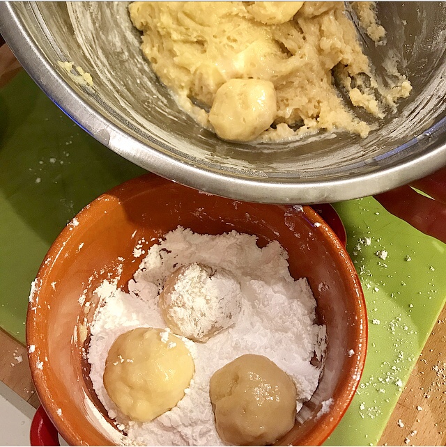 - formare delle palline di circa 18 gr e ripassarli nello zucchero a velo