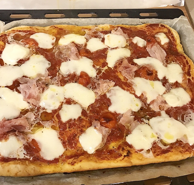 - per l’impasto si può usare solo la farina00, oppure setacciata +00. In più ho aggiunto il prosciutto cotto!