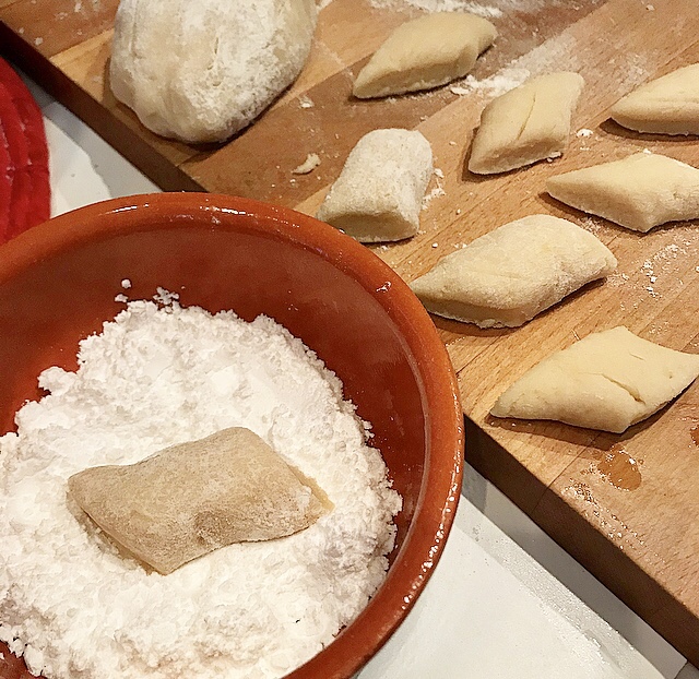 - lavorare l’impasto per qualche minuto e poi formare dei rotolini che taglierete a tocchetti ( come si fa per gli gnocchi)
