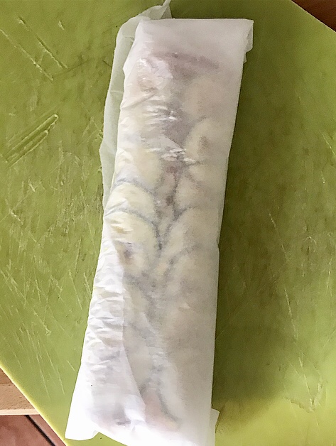 - chiuderlo con la sua stessa carta forno e lasciarlo in frigo x circa 15 minuti circa ( il tempo per compattarsi)