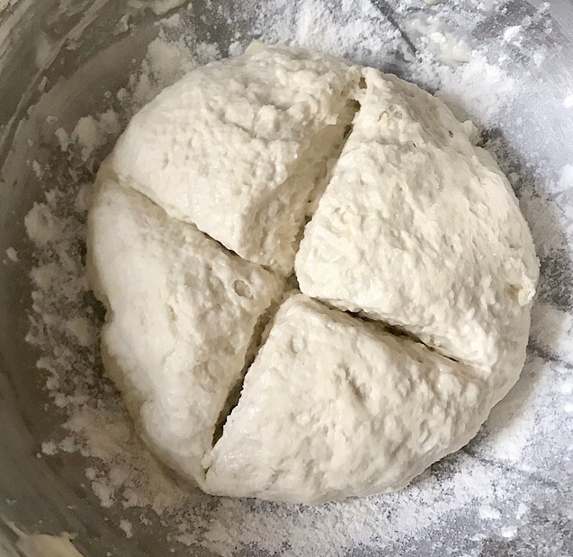 - formare una sorta di palla e lasciare lievitare ancora per circa 2 h coperta con pellicola con la luce del forno spento( incidere a croce )