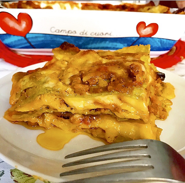 - La lasagna è un must della cucina italiana. In tavola mette d’accordo tutti per il suo sapore succulento. La lasagna classica è con la sfoglia all’uovo con il ragù alla bolognese, ma le varianti sono tante dalle vegetariane alle semplici con salsa di pomodoro! In questa mia ricetta ho optato per la sfoglia classica e quella verde a gli spinaci. Buonissima alla vista e poi al palato, perché come dice un vecchio detto: si mangia prima con gli occhi e poi con la bocca!