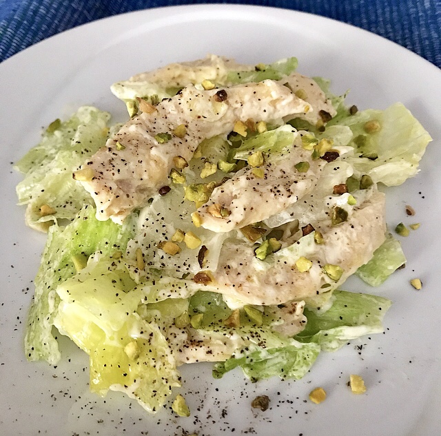 - Siamo in piena estate e nella nostra tavola non possono mancare i piatti freddi! Uno di questi é l’insalata di pollo,nella mia versione con lattuga iceberg e granella di pistacchio! Io sono una patita del pistacchio, per questo motivo lo troverete nei miei piatti in tutte le sue versioni. Ritornando a questo piatto prettamente estivo, è molto gradevole consumarlo nelle calde giornate, magari dopo essersi rifocillati dal rientro del mare!