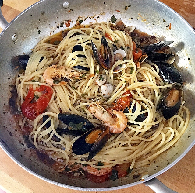 - Il condimento si cucina in pochissimo tempo perché i frutti di mare e i crostacei hanno bisogno di poca cottura altrimenti si sfaldano !