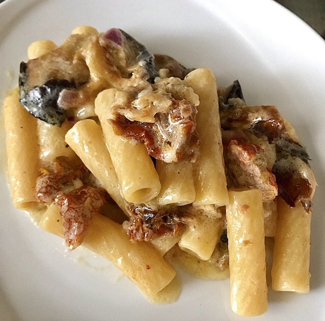 - Quanto amiamo la pasta? Per l’Italia è un must indiscutibile! Noi italiani ne andiamo fieri nel mondo! Siamo apprezzati spesso per gli spaghetti , anche se hanno origini cinesi , ma i tortiglioni non sono da meno! Questo piatto l’ho chiamato mediterraneo, perché raccoglie tutti i sapori del sud, con i pomodori secchi sott’olio che da sempre fanno le nostre nonne sulle balconate, stesi sotto il sole d’agosto. E poi la melanzana , protagonista assoluta dell’estate! A voi la mia ricetta!