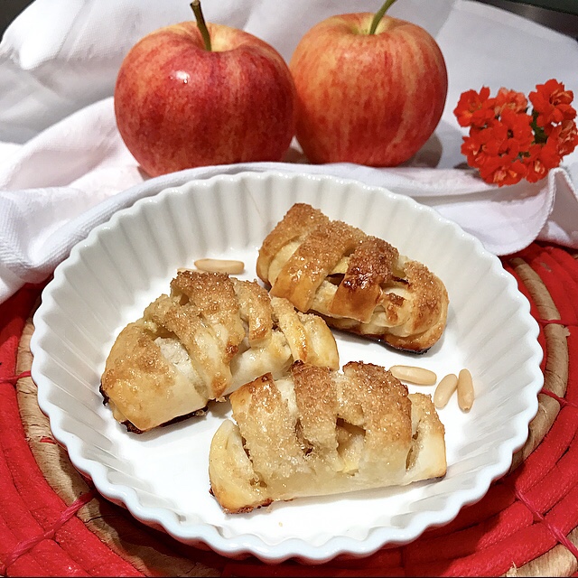 - Un buongiorno goloso con questi saccottini ripieni con fette di mela Fuji, una varietà che si presta alle preparazioni dolci; e poi tanti pinoli a contrastare la dolcezza! In versione mini , uno tira l’altro; sono ottimi non solo a colazione ma anche come snack da dare ai bambini! Semplici e gustosi i più piccini apprezzeranno!!!!
