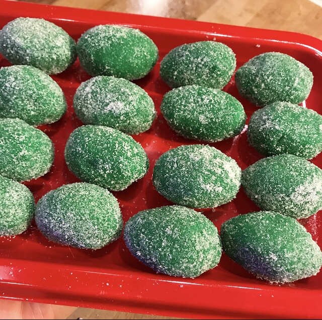 - a questo punto aggiungere all’impasto una piccola punta di colorante verde in gel e continuare ad amalgamare finché il colore si uniforma all’impasto