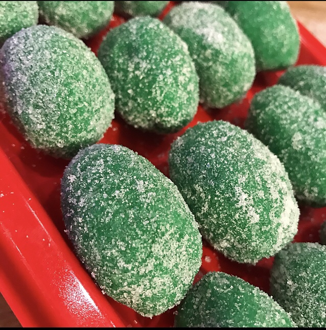 - passare ogni olivetta nel zucchero semolato