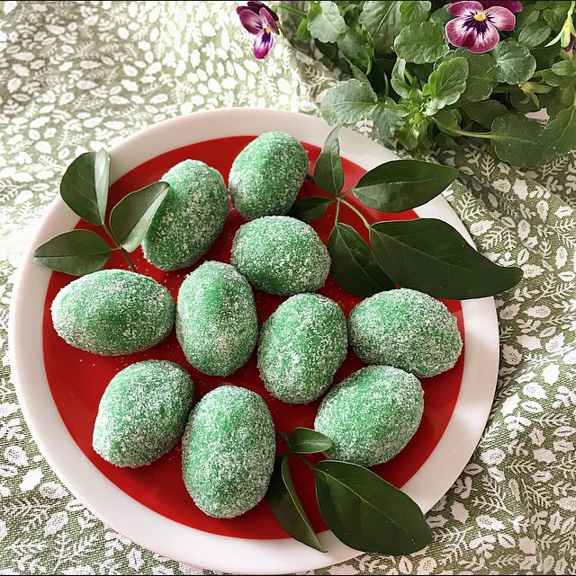 - Il dolce tipico catanese in pasta di mandorle! Le Olivette di S.Agata sono dei piccoli dolci a forma di olive verdi ricoperti di zucchero. Si consumano nella settimana delle festività della padrona di Catania! Questo simbolo che riporta al frutto dell’ulivo è legato alla storia del martirio della Santuzza ( come la chiamiamo noi catanesi). Si racconta che durante la persecuzione di Quinziano , Agata in fuga, dai soldati del dittatore, perché di religione cristiana e perché voleva assolutamente possedere questa bellissima e giovane ragazza ( Agata aveva solo 14 anni ). Durante il percorso Agata stremata si fermò e togliendo i calzari nel terreno dove lei mise i suoi piedi , diede vita ad un albero di ulivo dove si rifocillò con i sui frutti e si riparó dal freddo sotto l’arbusto! S.Agata si festeggia il 5 febbraio e per noi siciliani è una ricorrenza irrinunciabile!