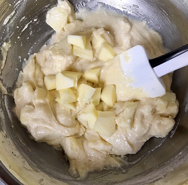 - a questo punto, amalgamare i dadini di mela con un cucchiaio di legno (o un lecca pentola)