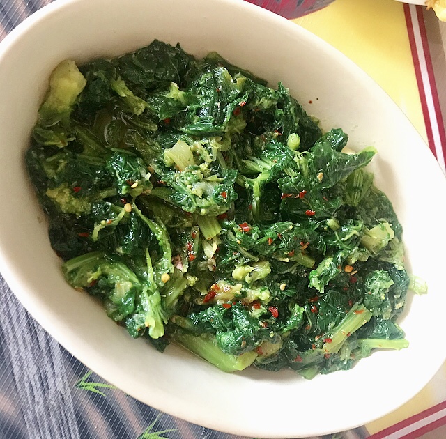 - a parte rosolare l’aglio con le acciughe e poi aggiungere le cime di rapa ( semi cotte) con scaglie di peperoncino ( in sostituzione pepe nero)