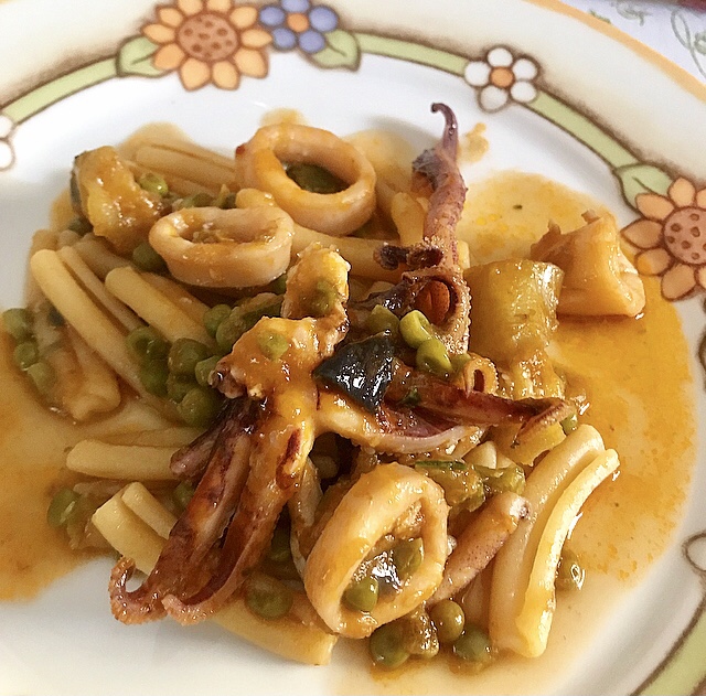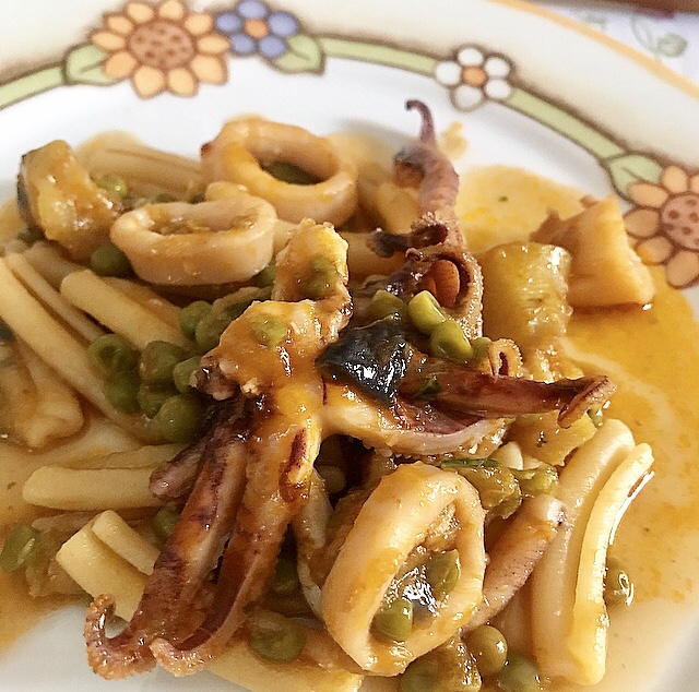 - Un piatto che profuma d’estate! I calamari in umido, con piselli e zucchine verdi, sono uno straordinario piatto per condire la pasta formato caserecce, o da scegliere come pietanza con crostini di pane tostato. Scegliete voi….dimenticavo….. un piatto da mangiare anche freddo!