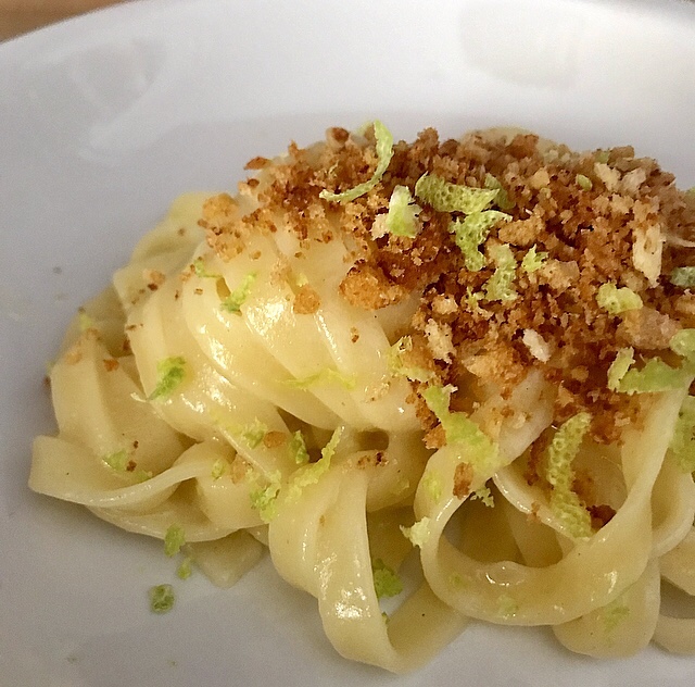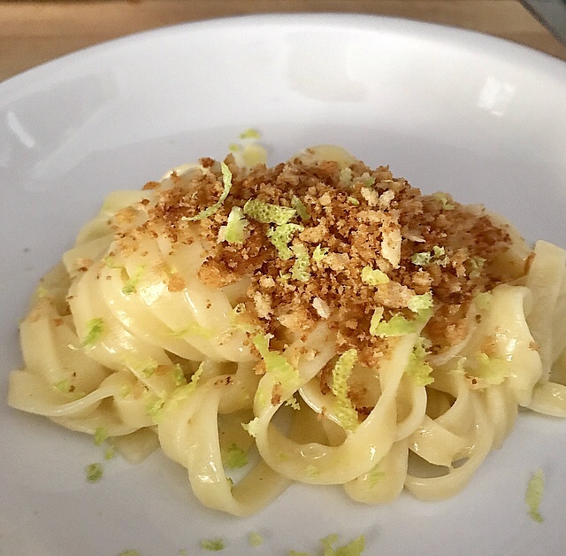 Un primo piatto che parla di semplicità e gusto. Le fettuccine sono un formato di pasta che unite al sapore della salsina al limone è tutta una esplosione di sapore al profumo dei limoni siciliani, raccolti nei grandi frutteti della pianura di Catania – Sicilia, alle pendici dell’Etna! Immaginate il profumo, unito alla bontà unica di un piatto povero! Proprio così, i contadini lo servivano con la muddica atturrata, cioè il pangrattato rosolato come fosse un buon formaggio!
