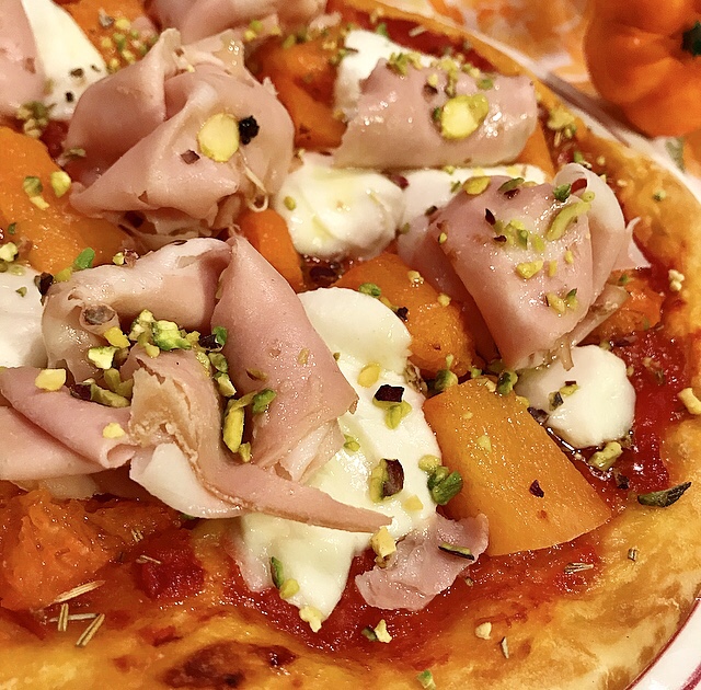 - Tutti adoriamo la pizza in tutte le sue forme e gusti! Questa è una mia personale variante con zucca, mortadella siciliana, mozzarella di bufala e una pioggia di granella di pistacchio! La dolcezza della zucca si sposa perfettamente al salato della mortadella con l’aggiunta dei profumi mediterranei! Provala e taggami nei miei social http://instagram.com/mykitchen56 Instagram e https://www.facebook.com/mykitchen56/ Facebook