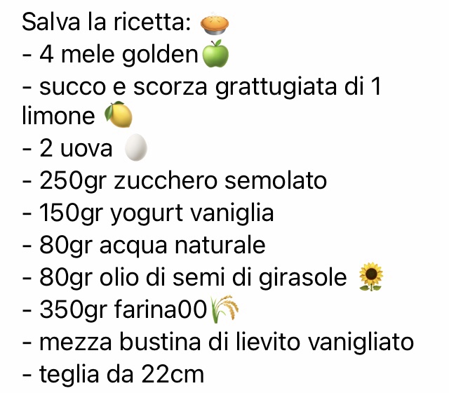 Cosa c’è di più buono di una torta di mele? È il profumo di casa, il dolce risveglio per far colazione accanto ad un buon caffè! La torta che preparo per le persone che amo! Prova e taggami su i miei social…