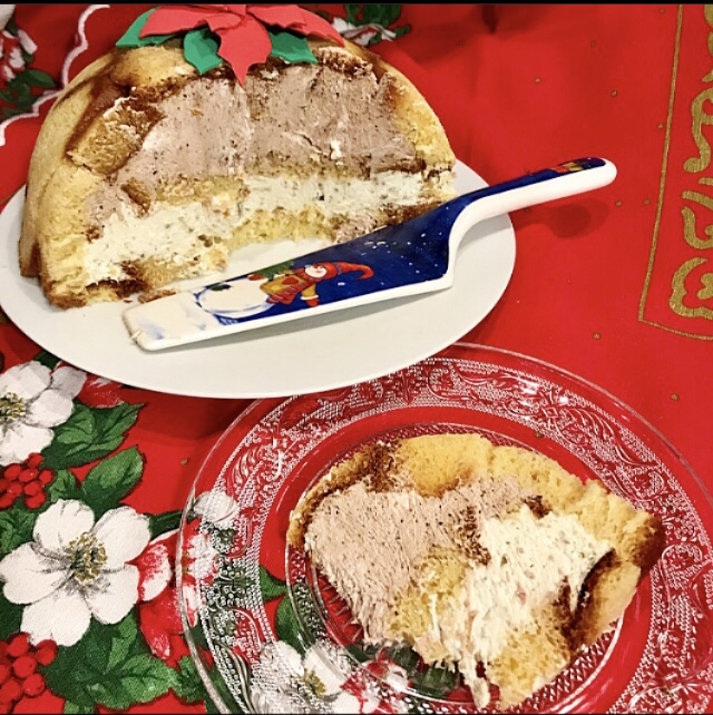 Lo zuccotto realizzato con il pandoro e due deliziose creme al mascarpone caffè e pistacchio. Un esplosione di sapori da portare in tavola in queste festività ma anche un idea per recuperare i pandoro avanzato. Le creme sono lavorate a freddo, in pochi minuti, con l’aiuto della planetaria ( in sostituzione con lo sbattitore elettrico).