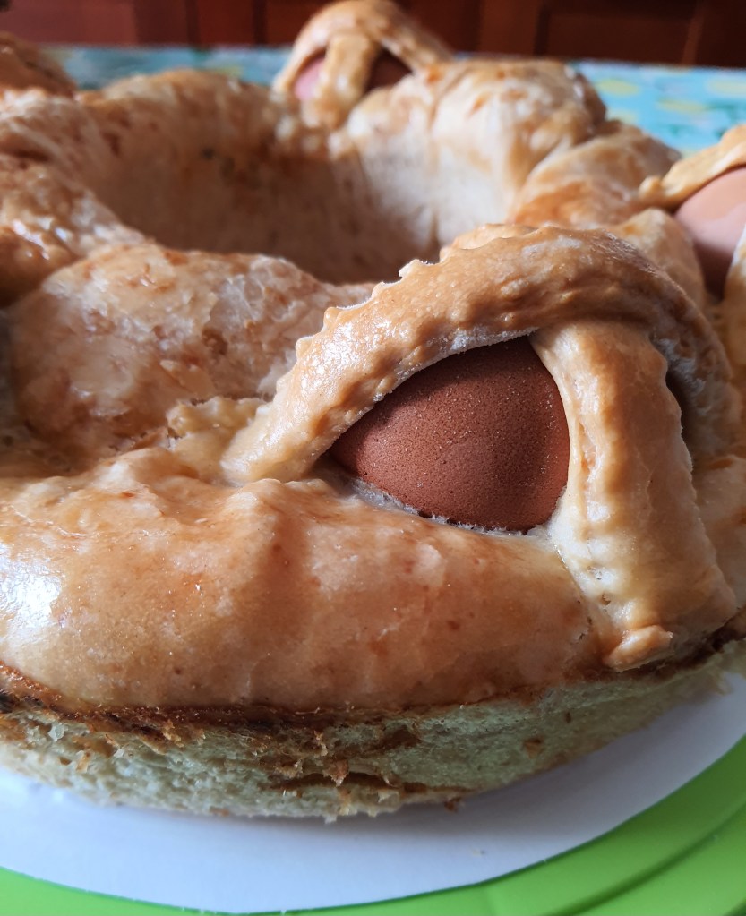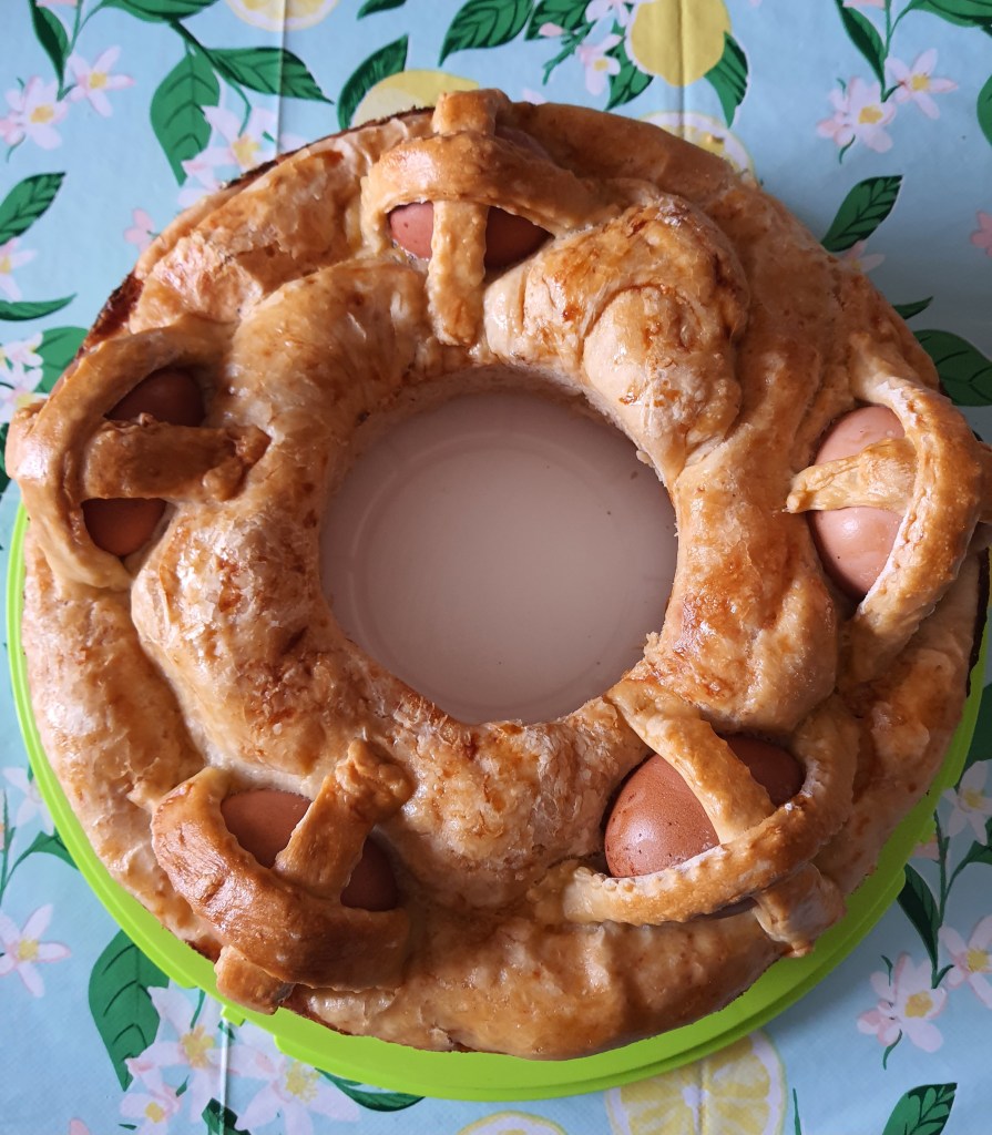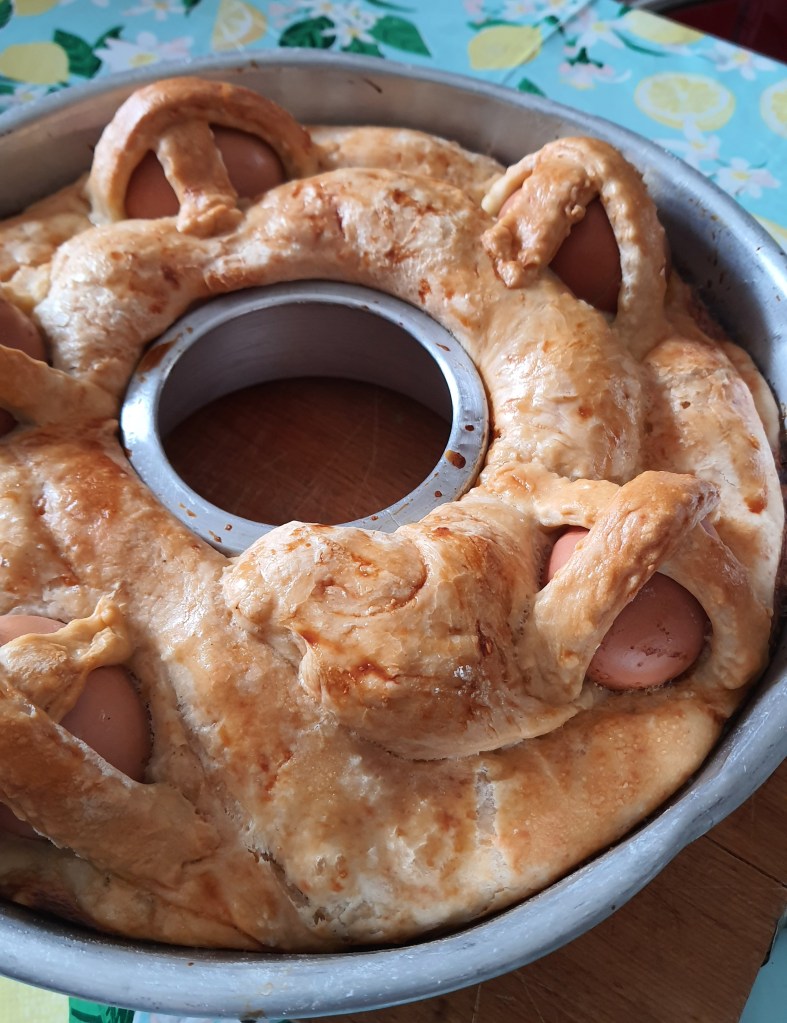 Una preparazione tipica napoletana, ma che io da siciliana mi sono voluta cimentare! Risultato? Stratosferico! In realtà é un pane quasi friabile e saporito dato dagli ingredienti che contiene! Il salame non può mancare e anche le uova che completa la corona come simbolo di abbondanza! Si consuma per la Santa Pasqua come buon augurio!!!